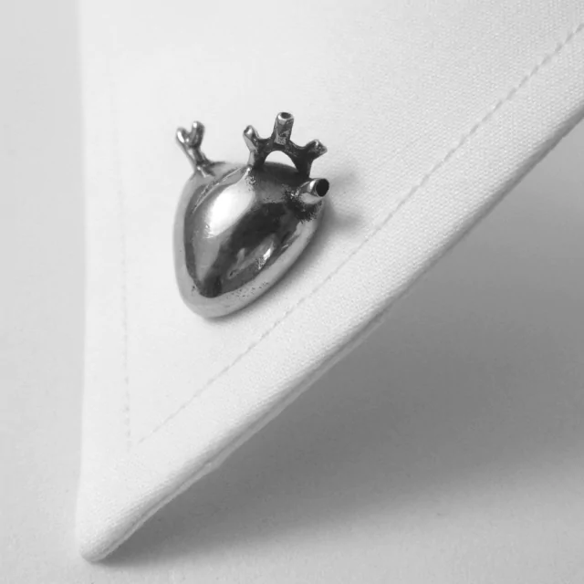 Pin Corazón, realizado en alpaca o bronce enchapado en oro 18k. Sistema de pin con snap de acero. Medidas: ancho: 1.8 cm, largo: 2 cm. Peso: 4 g. Libre de plomo.